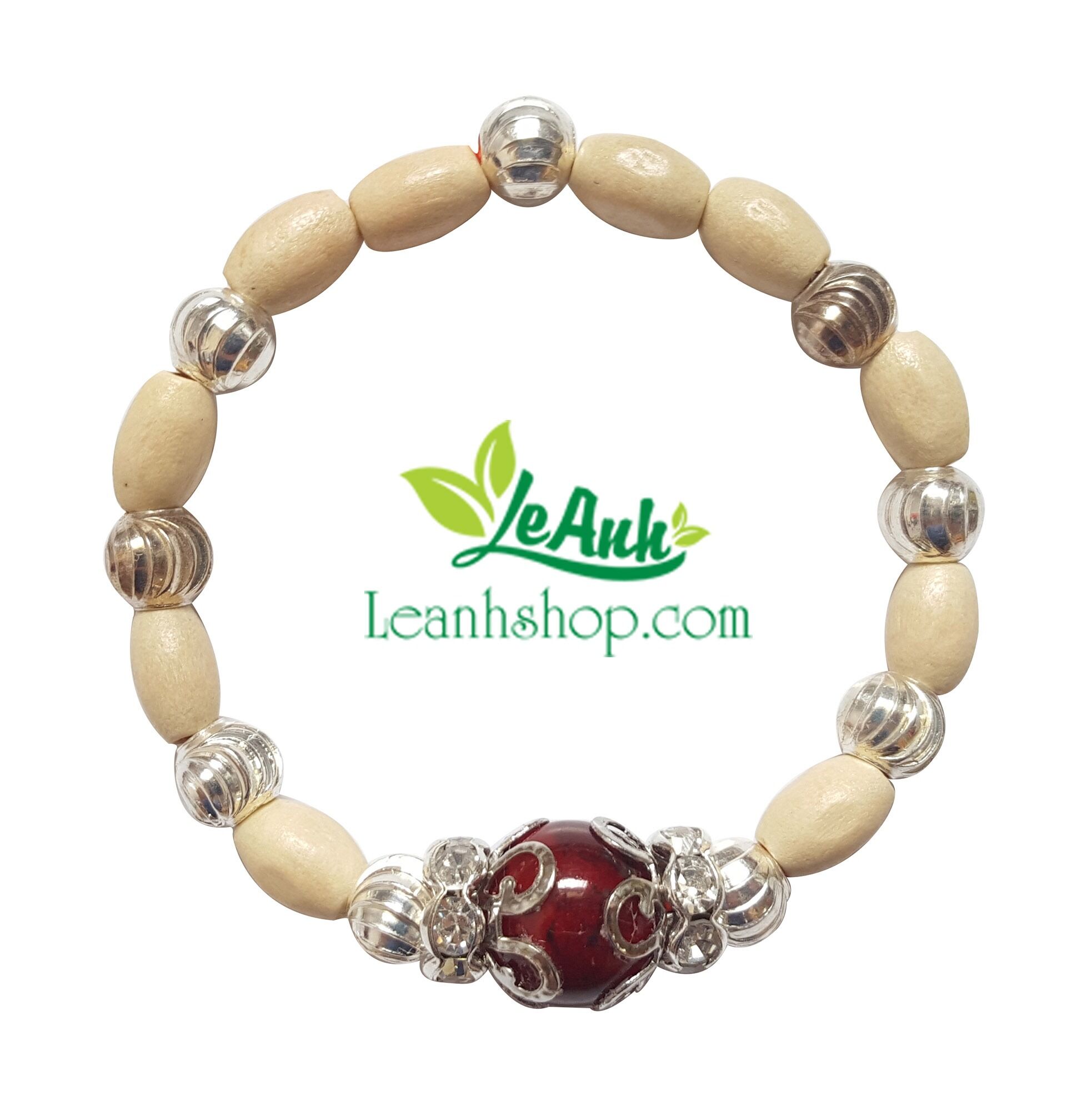 Vòng dâu tằm 9 bi bạc cho bé gái cùng bi đá màu đỏ hợp mệnh Hỏa.