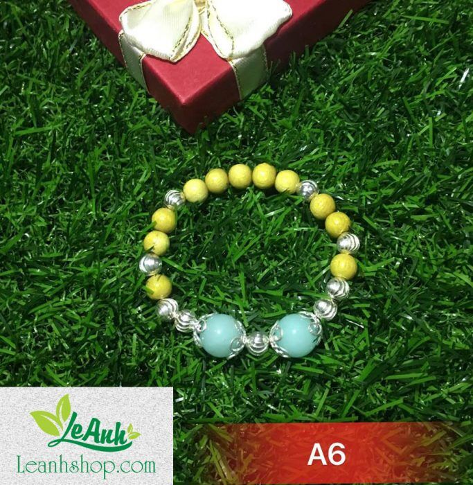 Vòng dâu tằm đeo tay VBG 11 cho bé gái gồm 9 bi bạc mix với 2 bi đá thạch anh màu xanh dành cho bé gái mệnh Thủy.