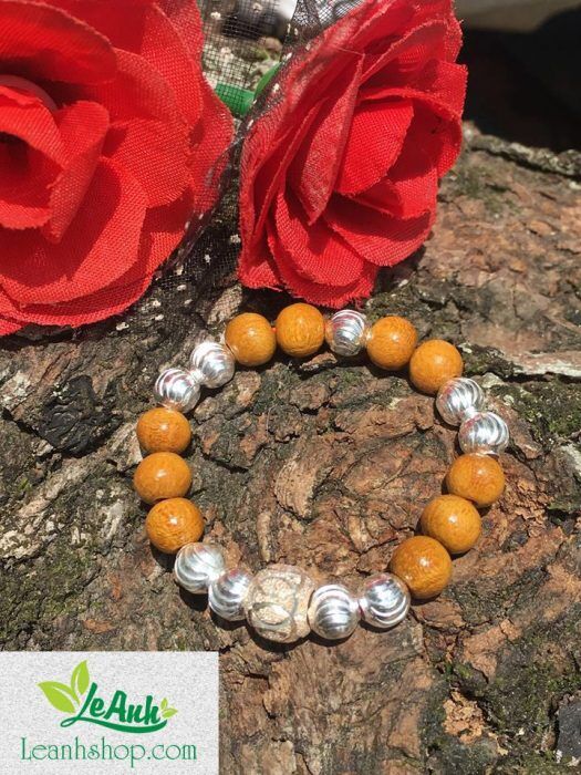 Vòng dâu tằm cho bé gái mệnh Kim với phụ kiện bạc rất đẹp và 9 bi bạc.