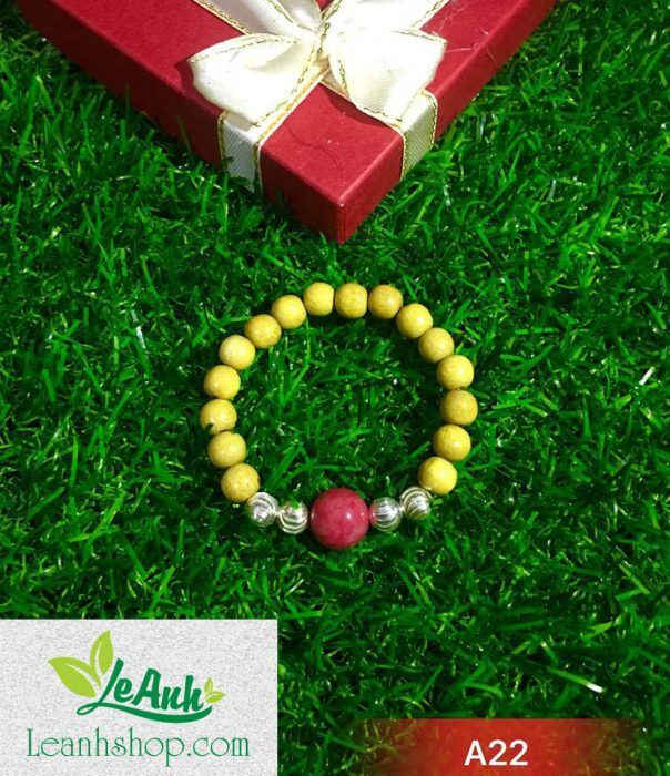Vòng dâu tằm A22 có 4 bi bạc và 1 bi đá màu hồng cho bé cả bé trai và gái mệnh Hỏa.