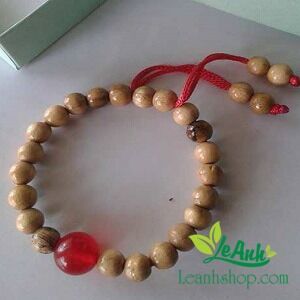 Vòng dâu tằm cho người lớn gồm các hạt dâu 12 mm và 1 bi đá màu đỏ hợp mệnh Hỏa.